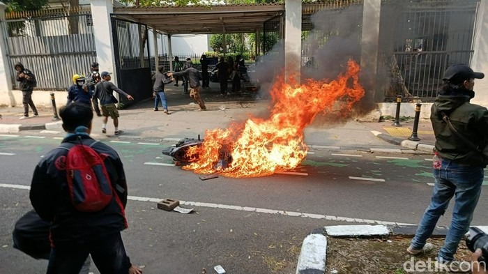 JAKARTA – Demonstrasi yang berlangsung di belakang gedung MPR/DPR RI, Jakarta, pada Senin (25/08/2025) berujung kericuhan. Massa aksi dilaporkan membakar sebuah sepeda motor dan merusak fasilitas di sekitar gedung DPR.