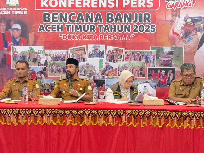 Rapat koordinasi yang berlangsung di Aula Serbaguna Pendopo Bupati Aceh Timur, Senin (20/4/2026), ini turut dihadiri oleh perwakilan Badan Nasional Penanggulangan Bencana (BNPB) serta seluruh camat se-kabupaten.