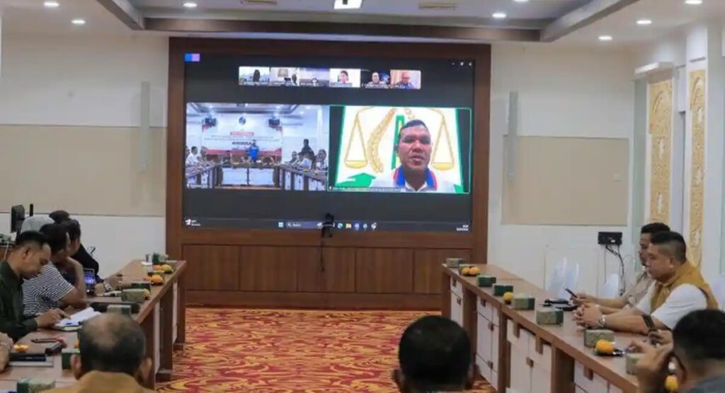 Suasana rapat koordinasi virtual yang dipimpin Wakil Gubernur Aceh, Fadhlullah, dalam rangka penetapan perpanjangan Status Transisi Darurat menuju Pemulihan Pascabencana Hidrometeorologi, Selasa (28/4/2026) malam.