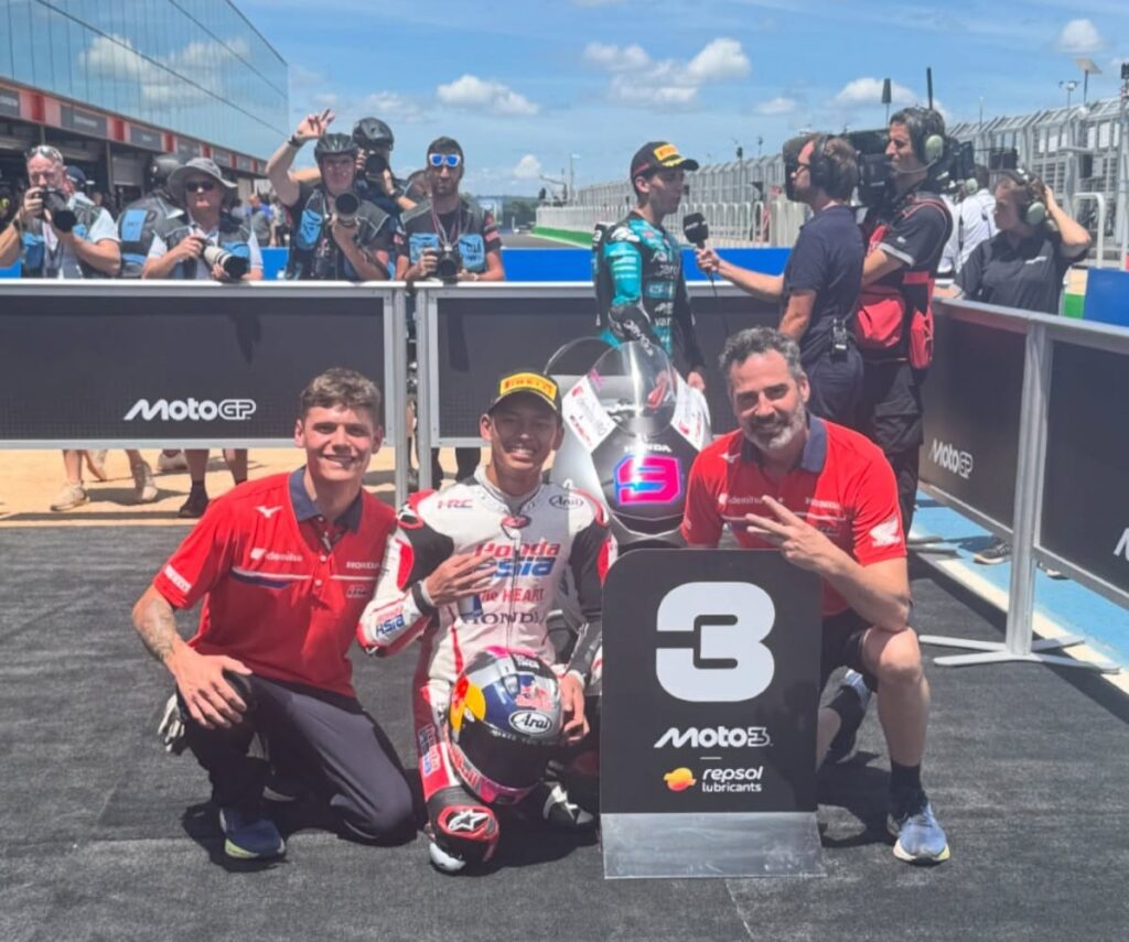 acehworldtime.com – Pembalap Indonesia, Veda Ega Pratama, berhasil menyabet podium ketiga pada balapan Moto3 Brasil, Minggu (22/3/2026) malam WIB. Prestasinya ini membuatnya sebagai pembalap Indonesia pertama yang berhasil naik podium di kejuaraan dunia tersebut.